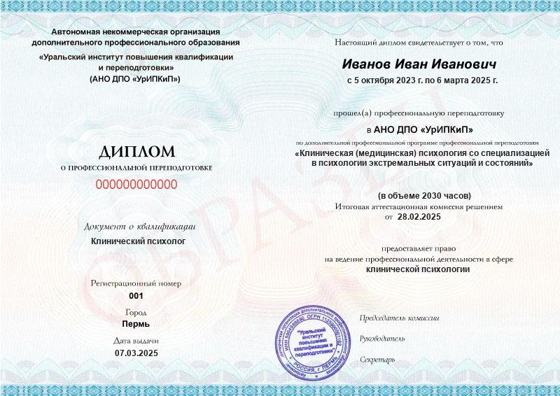 2 квалификации — «Клинический психолог» и «Кризисный психолог».