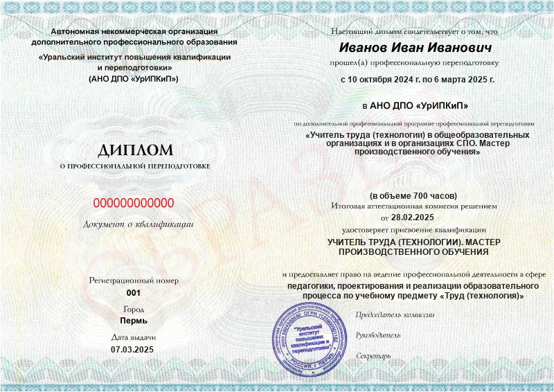 Да, дипломы и удостоверения оформляются в соответствии с действующим законодательством РФ. Документы печатаются на специальных бланках, заверяются печатью АНО ДПО «УрИПКиП».